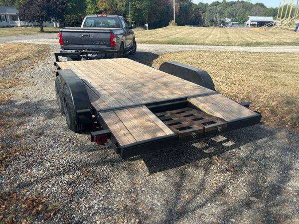 This 16-foot Car Hauler is the perfect solution for transporting vehicles safely and efficiently. With a convenient dovetail design and stowed ramps, loading and unloading is a breeze, making it ideal for cars, small equipment, and more. Built with durability in mind, this trailer can handle heavy loads with ease, providing a reliable towing experience for all your hauling needs.